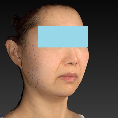 フェイスラインだけでなく、あご下のたるみも改善したいと思います。たるみによりフェイスライン周囲がぼやけた感じになっています。
