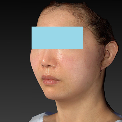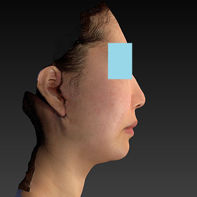 耳垂の変形は、術前と比較してほとんど無く、「フェイスリフト耳」にはなっていないと判断します。術前よりも、フェイスラインがハッキリしてきました。