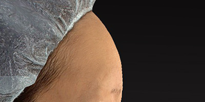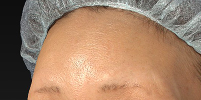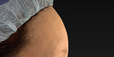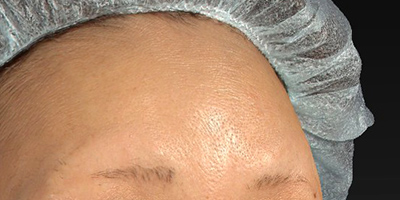 一般的に、額は、年齢と共に眉上が凹んで、眉の部分の骨が出てきます。特にこめかみの凹みを気にされていました。