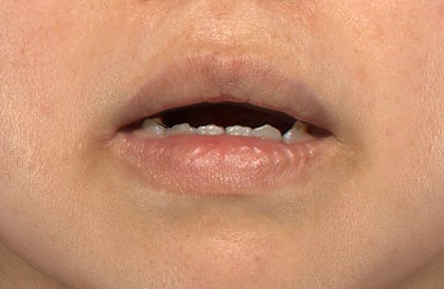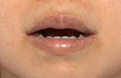 口角が下がっている人は、口を開けても口角が下がっているので、改善したいと思います。上口唇の形をM字風にされたいとのことでした。