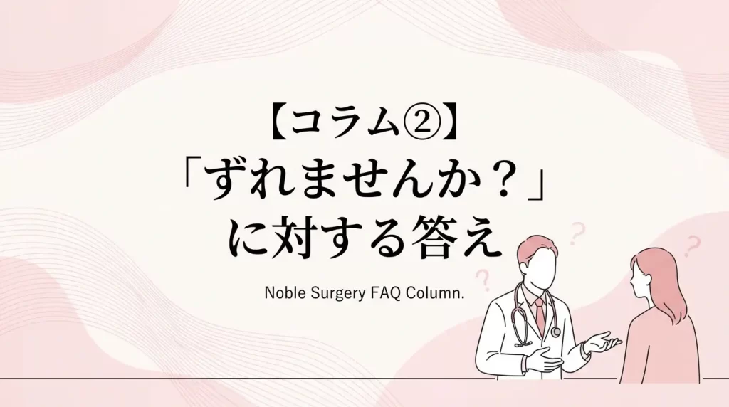 腫れ(腫脹)、皮下出血、感染、痛み、左右差、傷痕、術後しばらく違和感を感じることがあります。